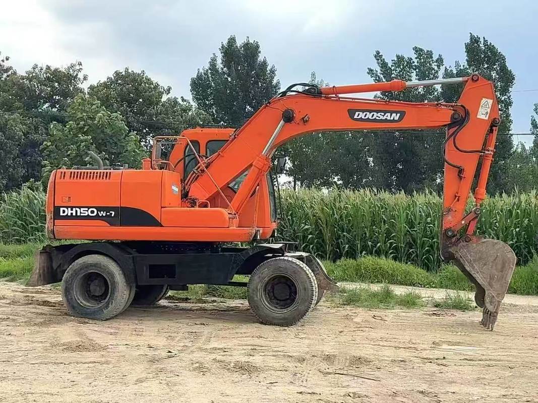 Использованный колесный экскаватор Doosan DH150W-7, эксплуатационная масса 15 тонн, хорошее состояние, небольшая наработка. Готов к экспорту из Китая. Идеально подходит для дорожного строительства, городских проектов и легких горнодобывающих работ.